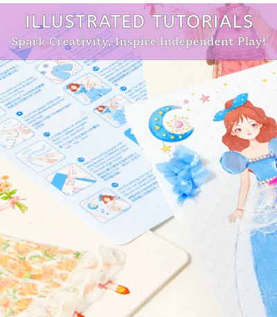 - يمكن للأطفال تثبيت القماش والإكسسوارات بسهولة باستخدام المواد اللاصقة المُرفقة، مما يجعلها آمنة ومناسبة للمصممين الصغار.