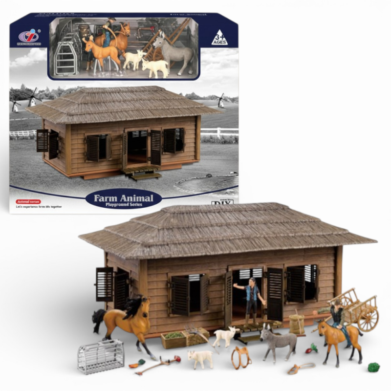 استمتع بتجربة الحياة الريفية مع مجموعة مزرعة الحيوانات للأطفال التي تضم حظيرة مزرعة كبيرة، مجسمات حيوانات، مزارعين وأدوات مزرعة متنوعة لتوفير تجربة لعب واقعية وممتعة.