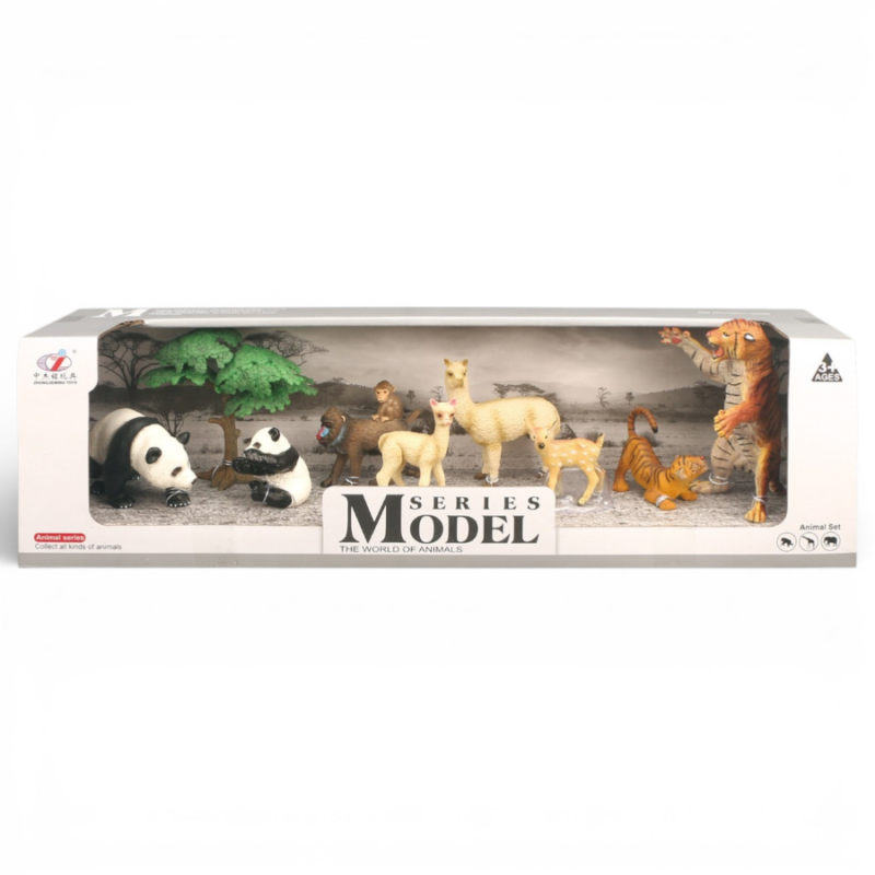 Wild Animal Figures Set مجموعة حيوانات السفاري للأطفال – باندا ونمر ولاما | مجسمات حيوانات برية تعليمية