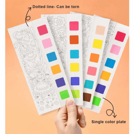 - يحتوي كتاب الرسم على عينات ألوان لكل ورقة. ما عليك سوى بلّل فرشاة الرسم المرفقة بقليل من الماء، ثم امسحها برفق على عينات الألوان، ثم لون الصورة لإنشاء تحفتك الفنية الخاصة! تصميمه المحمول والمدمج يجعله رفيق سفر مثالي لطفلك. يمكن تمزيق عينات الألوان بسهولة بعد الانتهاء من الرسم، ويمكن استخدامها كعلامة مرجعية أو لصقها على الثلاجة لعرض أعمال طفلك بفخر.