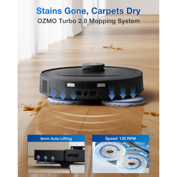 يأتي هذا الروبوت بقوة شفط هائلة تصل إلى 20000 باسكال، مما يجعله مثالياً لتنظيف السجاد والأرضيات بعمق، حتى في أصعب الظروف. كما يتميز بتقنية ZeroTangle التي تمنع تشابك الشعر، مما يقلل الحاجة إلى الصيانة ويوفر تجربة تنظيف سلسة وفعالة.