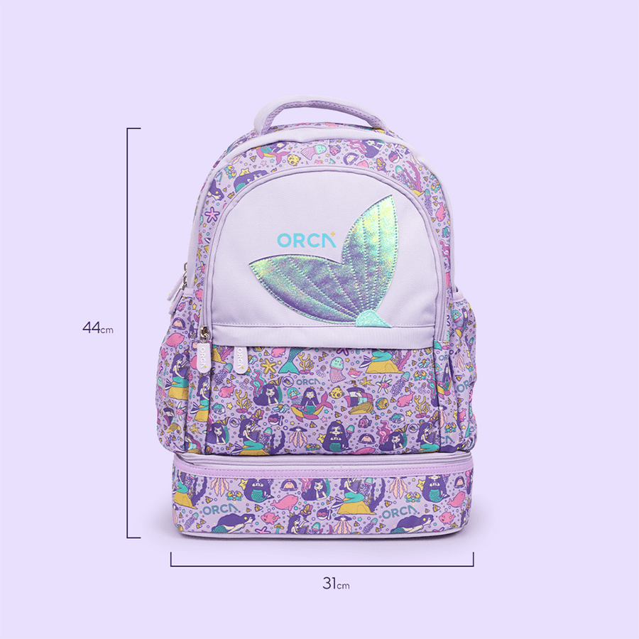 حقيبة ظهر حورية البحر أوركا 3 في 1: حقيبة مدرسية، حقيبة غداء، وحافظة أقلام🧜‍♀️
