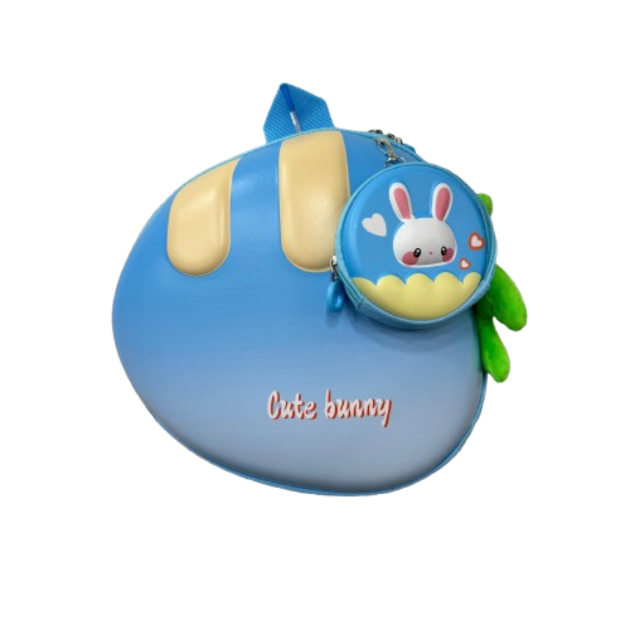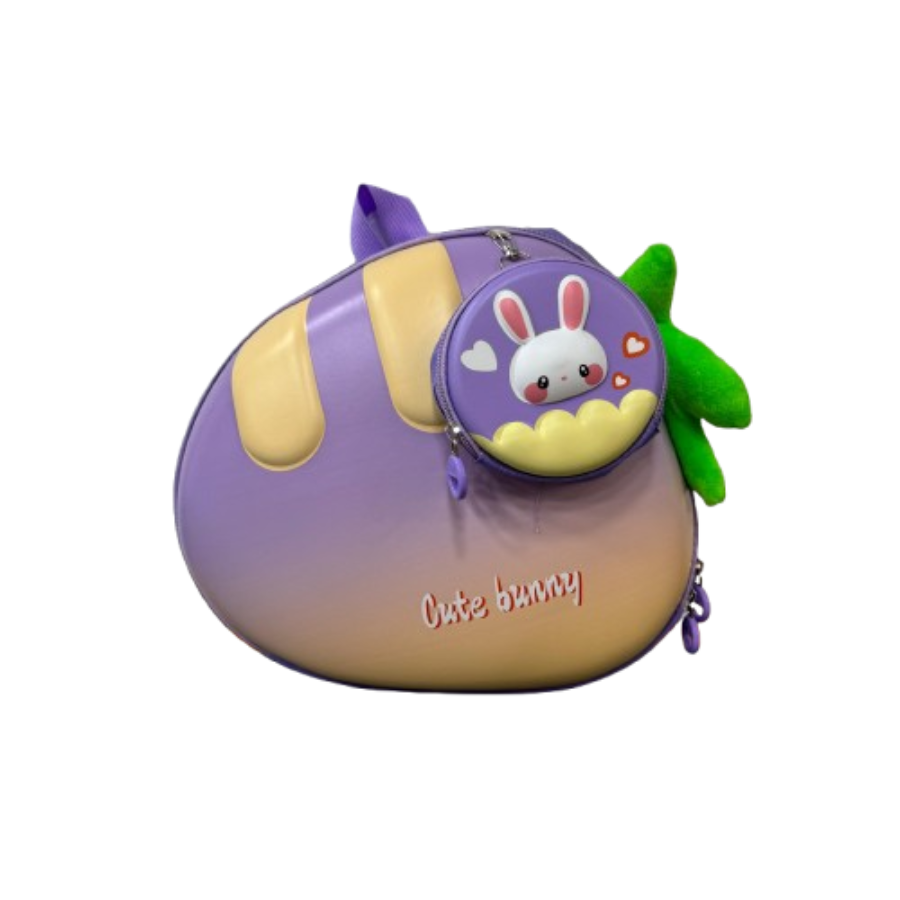 🥕 شنطة بتصميم بيضاوي على شكل جزرة بألوان متدرجة، مع وجه أرنب لطيف يضفي لمسة لكل طفل.