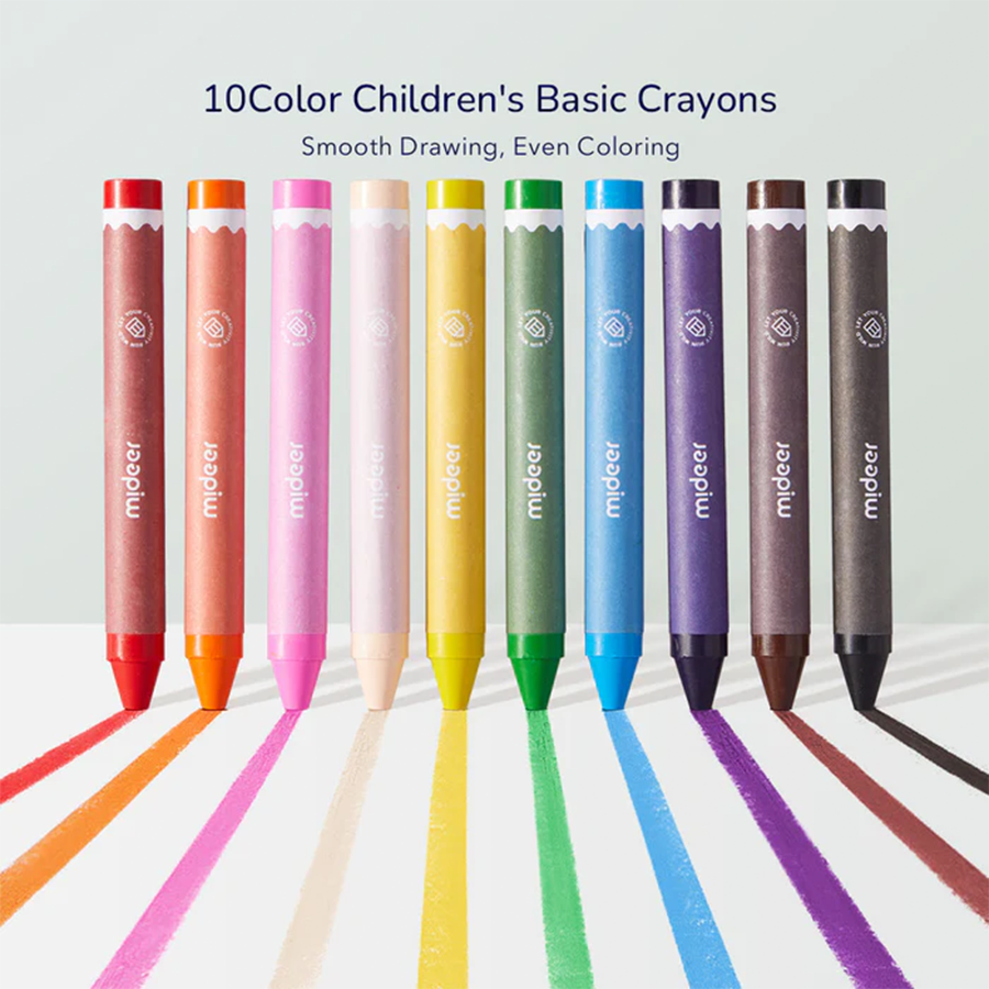 - أقلام تلوين ناعمة: توفر ١٠ ألوان أساسية للأطفال، تنساب بسلاسة على الورق لتلوين متساوٍ.