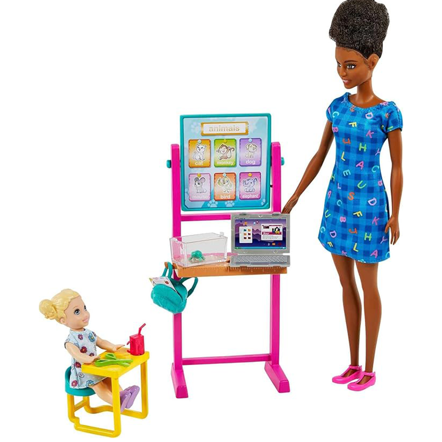 مع مجموعة باربي المعلمة، يمكن لطفلتك أن تتقمص دور المعلمة وتعيش تجربة صفّ دراسي مليء بالتفاعل والتعلم!