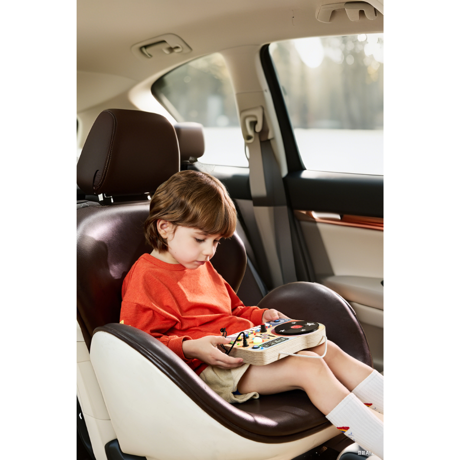هذه اللوحة الخشبية التعليمية تجمع بين اللعب الحسي والتعلم العملي، حيث يمكن للأطفال الضغط، التدوير، التوصيل، والتجربة مثل منسق موسيقى صغير (DJ).