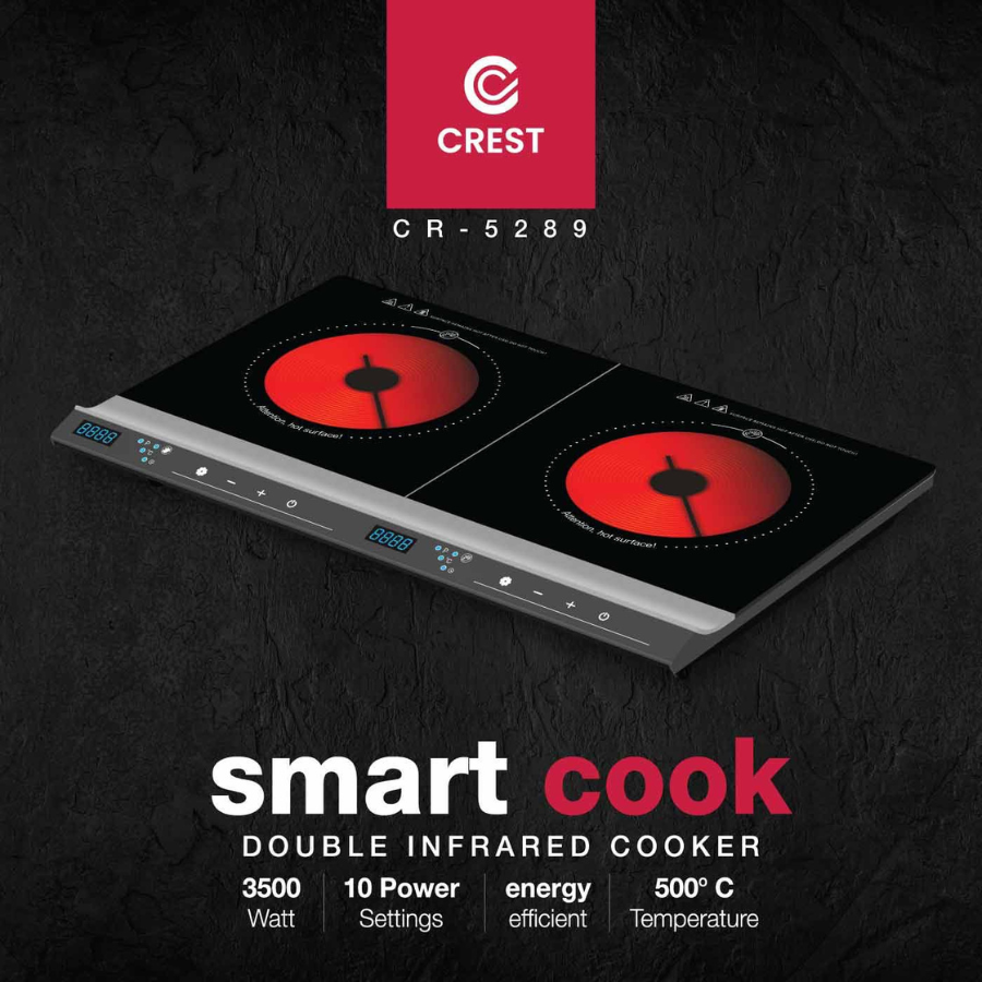 موقد كهربائي مزدوج يعمل بتقنية الأشعة تحت الحمراء لتسخين سريع وقوي، يتيح لك الطهي على عينين في نفس الوقت بكفاءة عالية وتوفير في استهلاك الطاقة. تصميم عصري مع لوحة تحكم رقمية مستقلة لكل عين، مناسب للعائلات والمطابخ العملية.