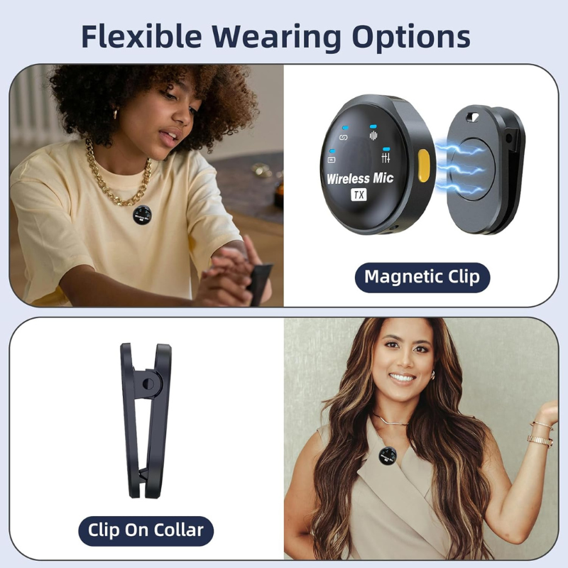 يأتي المنتج مع مايكروفونين لاسلكيين لتسجيل شخصين في نفس الوقت، مما يجعله مثاليًا للمقابلات، الحوارات، الفيديوهات المشتركة، البودكاست، فيديوهات الشارع، والدروس التعليمية.