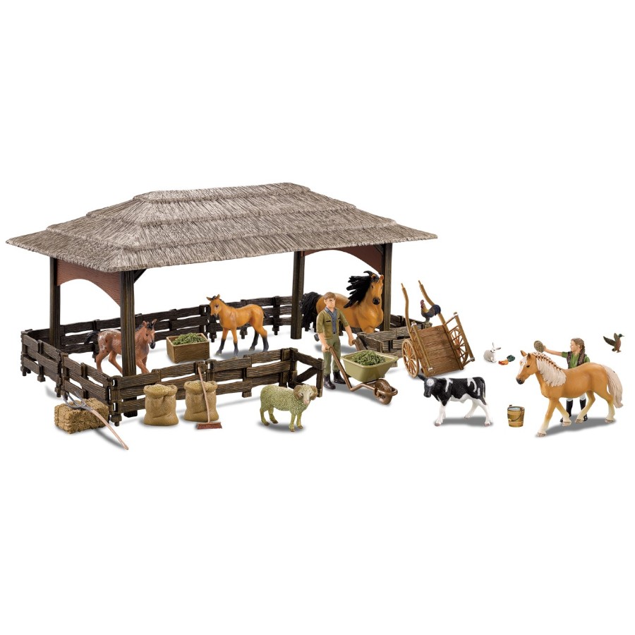 يمكن للأطفال بناء مزرعتهم الخاصة باستخدام الحظيرة والسياج وأدوات المزرعة ثم الاعتناء بالحيوانات المختلفة مثل الخيول، الأبقار، الخراف والدجاج. كما تساعد هذه اللعبة الأطفال على إنشاء قصص ومشاهد مختلفة عن الحياة اليومية في المزرعة مثل إطعام الحيوانات أو تنظيف الحظيرة.