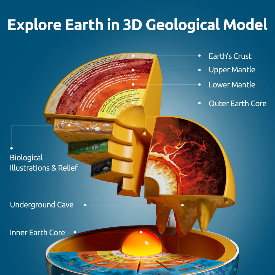 Interactive Talking Earth Globe – 3D Geological Model for Kids الكرة الأرضية التفاعلية الناطقة – نموذج ثلاثي الأبعاد لطبقات الأرض