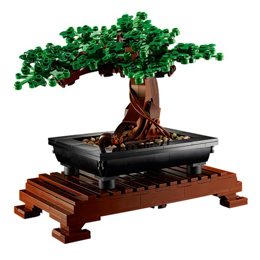- نموذج شجرة بونساي – يتميز بنموذج شجرة بونساي من ليجو مع وعاء مستطيل وحامل خشبي شبكي، مصمم للبنائين البالغين.