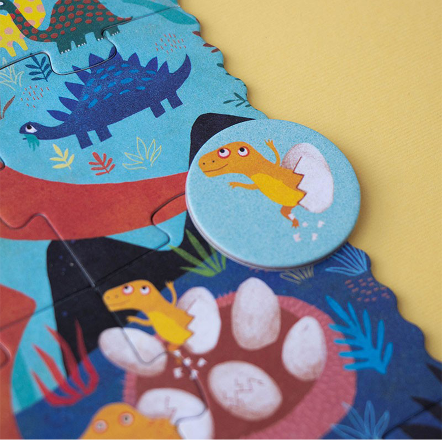 - لعبة ألغاز مراقبة مكونة من 24 قطعة لاستكشاف عالم الديناصورات.