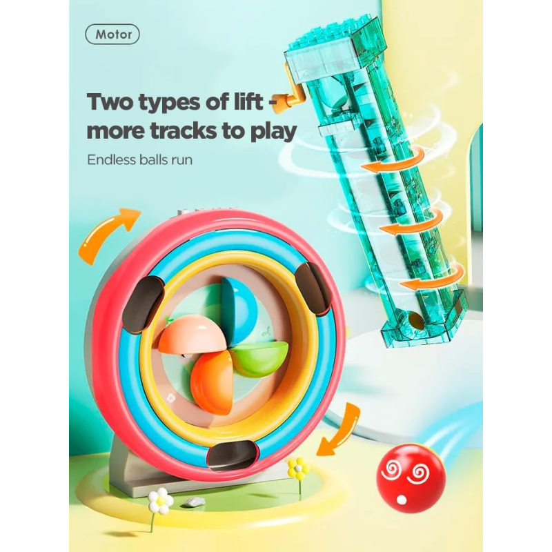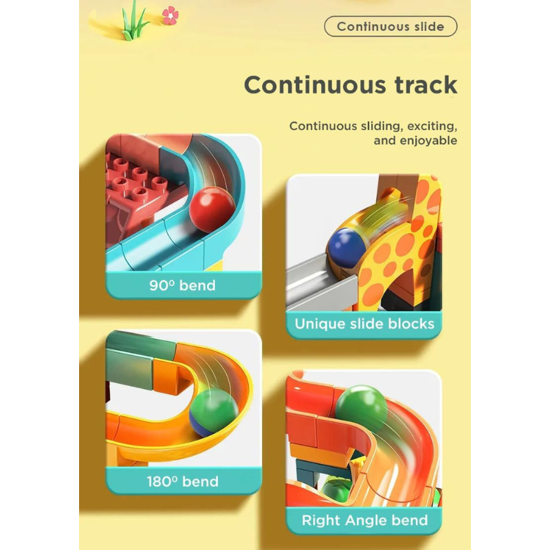 مجموعة مسار الكرات التفاعلي هي لعبة تركيب ذكية تجمع بين البناء واللعب الحركي، حيث يقوم الطفل ببناء مسارات ومنزلقات مختلفة لتتحرك الكرات بشكل مستمر!