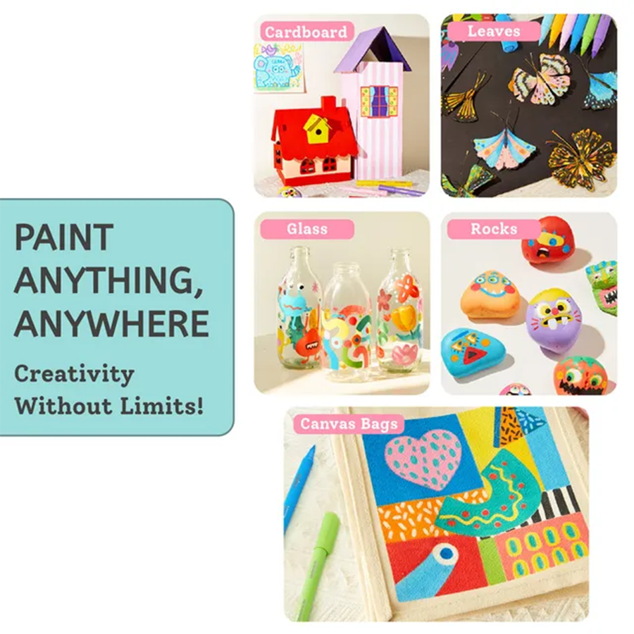 - يضمن الحبر سريع الجفاف عملاً فنياً خالياً من التلطخ، بينما يسمح التدفق السلس بالتلوين بسلاسة على أسطح متعددة. بالإضافة إلى ذلك، يُمكن مسحها بسهولة على الأسطح الملساء مثل الزجاج والبلاستيك! تأتي هذه المجموعة في حقيبة حمل أنيقة، وهي مثالية للأعمال الفنية أثناء التنقل. سواءً للرسم أو التزيين أو الأعمال اليدوية، فإن هذه الأقلام ضرورية للعقول المبدعة!
