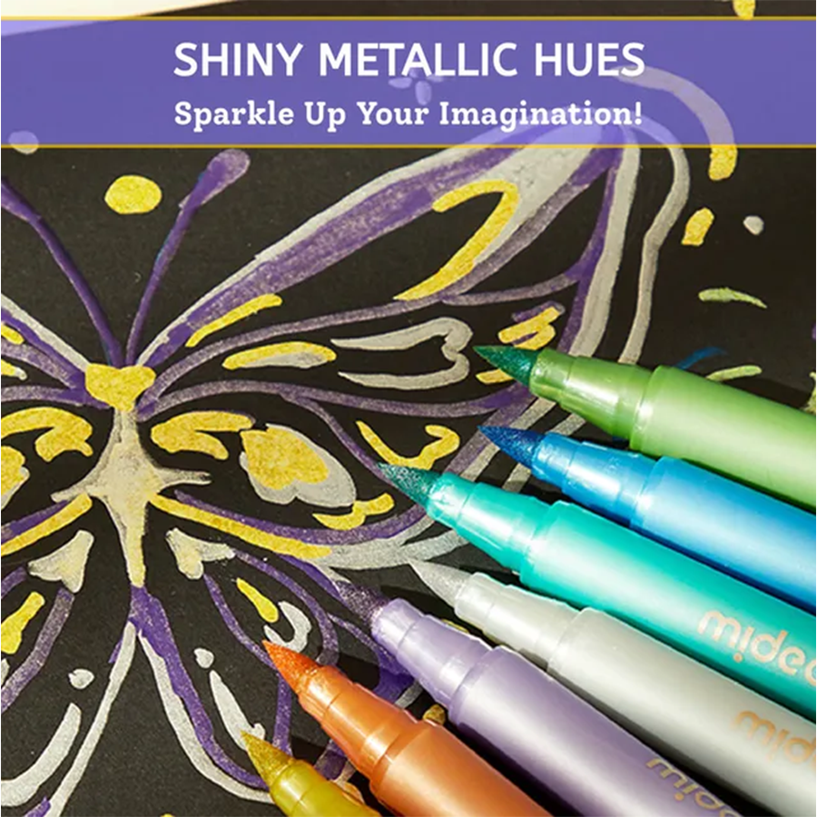 - صُممت أقلام تحديد الأكريليك من ميدير للفنانين من جميع المستويات، وتتميز برأس فرشاة لضربات ناعمة وسلسة. بألوانها النابضة بالحياة والمعدنية، تُبرز هذه الأقلام إبداعك! مصنوعة من تركيبة مائية، خالية من الكحول والروائح، وهي آمنة للأطفال والكبار.