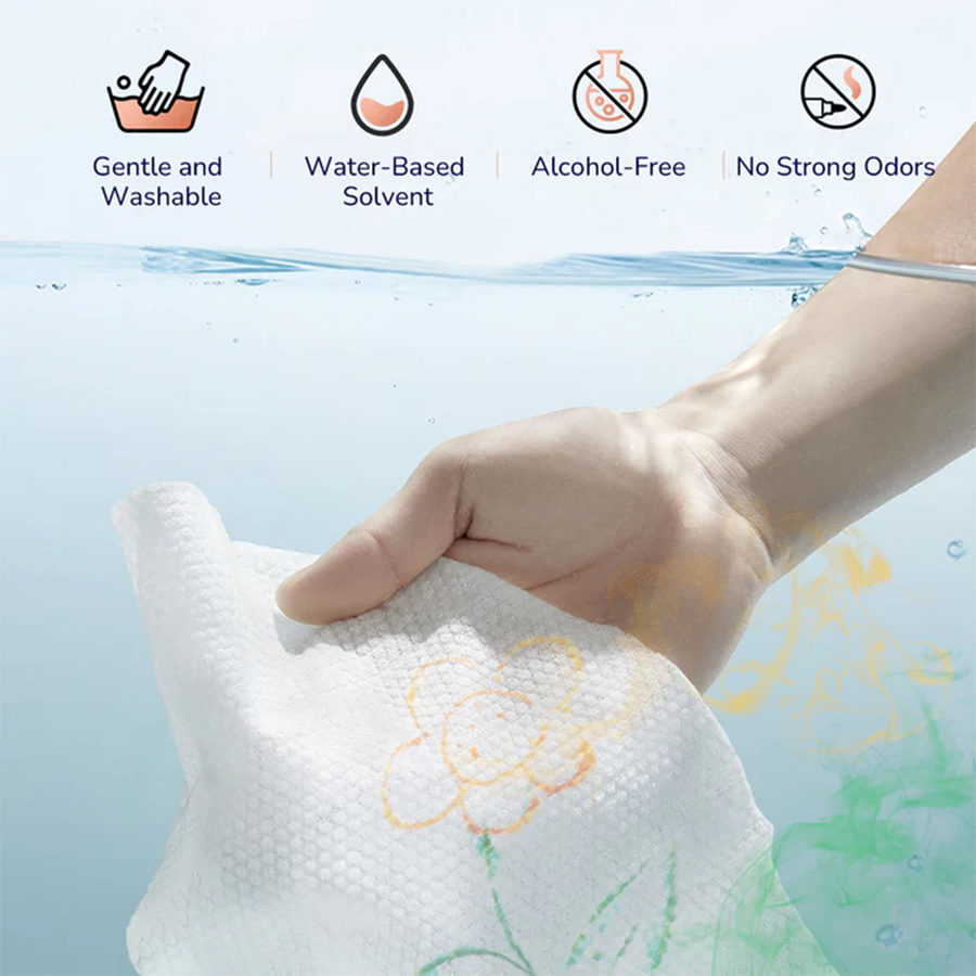 - حبر مائي: الحبر مائي، خالٍ من الكحول، وخالٍ من أي روائح نفاذة، مما يجعله آمنًا ومناسبًا للأطفال للاستخدام لفترات طويلة دون أي إزعاج.