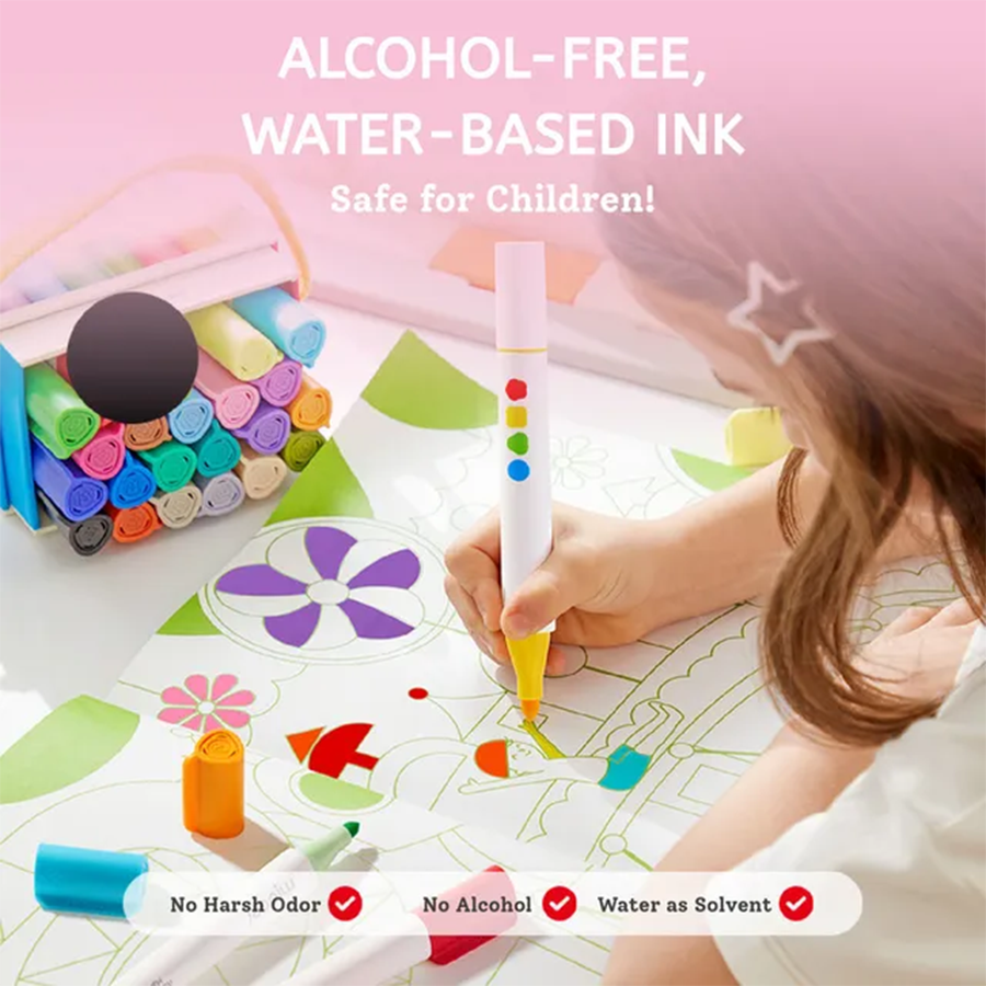 - يطمئن الآباء مع حبر ميدير الخالي من الكحول والأساس المائي، سريع الجفاف، سهل الغسل، وخالٍ من الروائح الكريهة. الغطاء مقاس 21 مم مصمم بعناية مع علامات قبضة وفتحات تهوية، مما يمنع مخاطر الاختناق ويسهل على أيدي الأطفال فتحه.