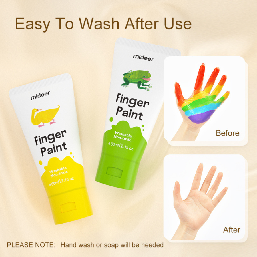 الألوان غير سامة وقابلة للغسل بسهولة بالماء والصابون، لذلك يمكن للأطفال الاستمتاع بالرسم دون قلق من الفوضى. كما تأتي الألوان في أنابيب سهلة الاستخدام بحجم مناسب للأطفال.