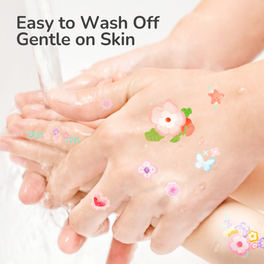 الملصقات لطيفة على البشرة وسهلة الإزالة والغسل بالماء، مما يجعلها آمنة ومناسبة للأطفال الصغار.