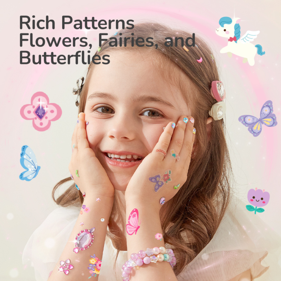 يمكن للأطفال استخدام هذه الملصقات الجميلة لتزيين الأظافر، اليدين، الوجه، الحقائب، الدفاتر أو الإكسسوارات وصنع إطلالات خيالية مستوحاة من عالم الأميرات والجنيات. كما تتيح المجموعة للأطفال المزج بين الملصقات المختلفة لإنشاء تصاميم فريدة تعبر عن شخصيتهم وإبداعهم.