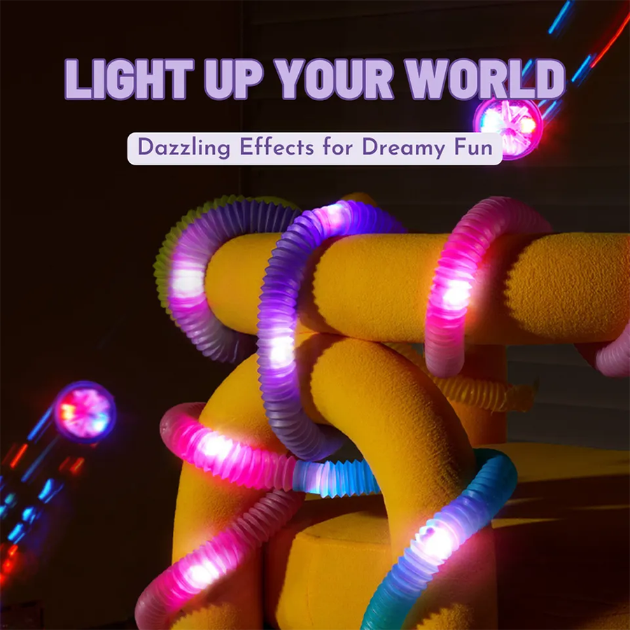 - أنابيب Mideer Glow Pop هي لعبة ساحرة تحفز الإبداع من خلال التمدد واللف بأشكال مختلفة.