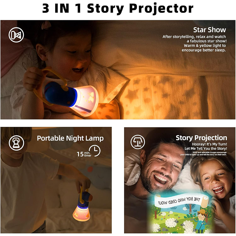 - تتضمن العبوة جهاز عرض قصص خرافية واحد، وكتاب قصص واحد، و12 بكرة عرض قصص خرافية كلاسيكية مع 96 فيلمًا مصورًا من فنانين، كل رسمة يمكن أن تكون قصة إبداعية ممتعة. مثالية لتنمية مهارات الطفل اللغوية. بُعد بؤري قابل للتعديل، كلما زادت المسافة، زاد حجم الصورة. مسافة العرض الموصى بها حوالي 20 بوصة.