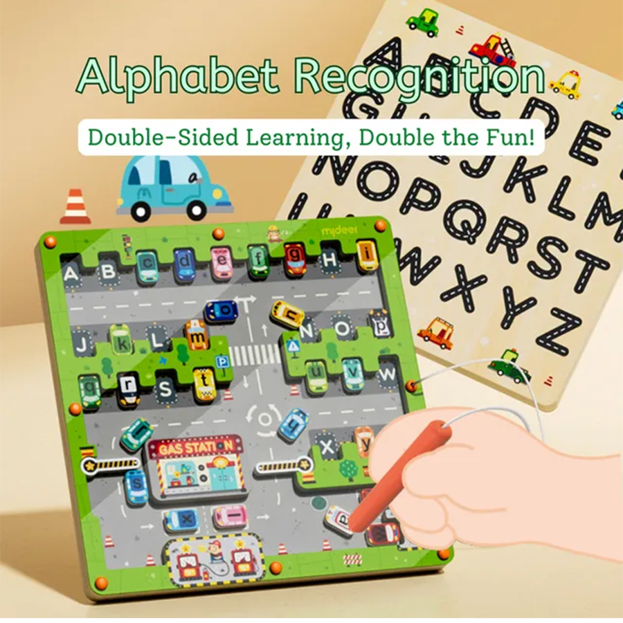 - متاهة ميدير المغناطيسية – موقف السيارات هي لعبة ممتعة وتعليمية مصممة لتعزيز تعلم طفلك وتطوره. تتميز بـ ٢٦ سيارة أبجدية، حيث يمكن للأطفال مطابقة كل سيارة مع موقفها المخصص، مما يُحسّن مهاراتهم في التعرف على الحروف وحل المشكلات. تتضمن هذه اللعبة مزدوجة الجوانب متاهة واسعة على أحد الجانبين ولوحة أبجدية على الجانب الآخر لمزيد من فرص التعلم.