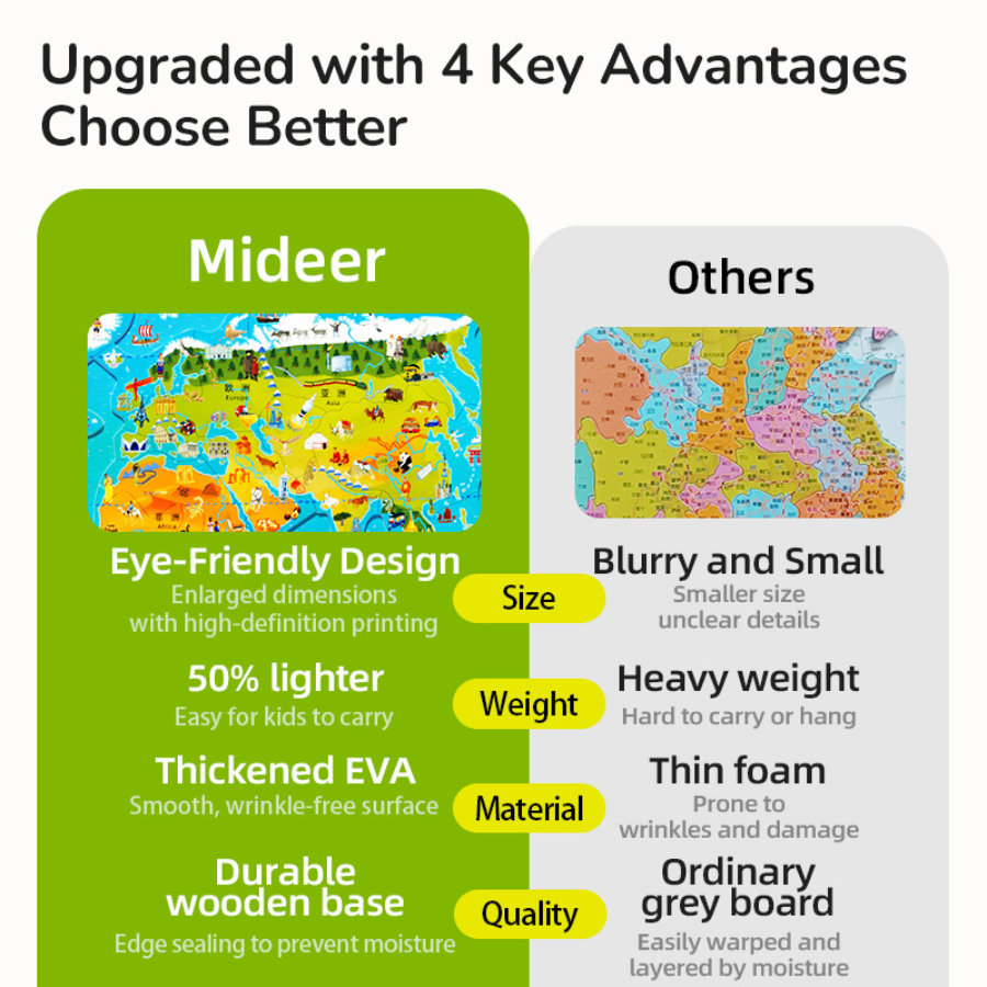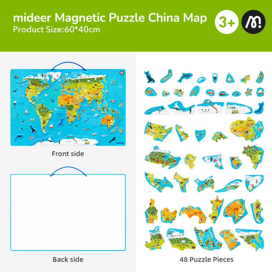 تقدم Mideer Magnetic Puzzle – World Map تجربة تعليمية ممتعة تساعد الأطفال على اكتشاف العالم بطريقة تفاعلية ومسلية.