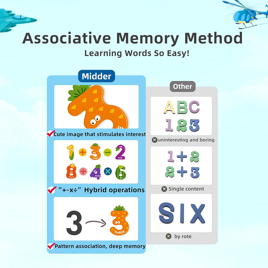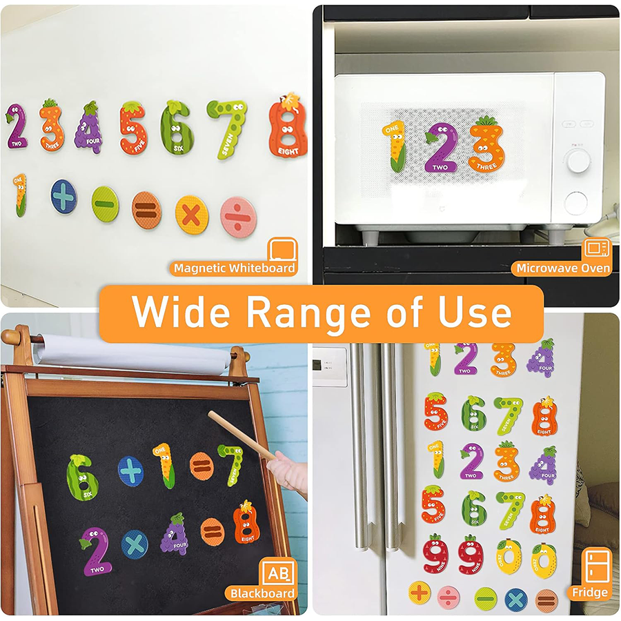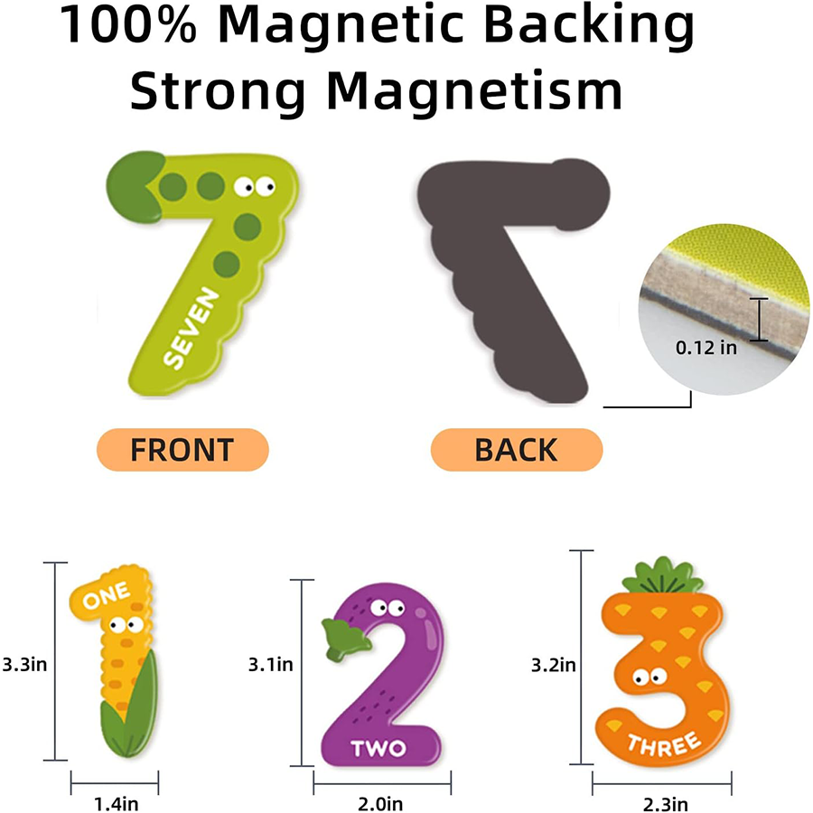 - تحتوي مجموعة مغناطيسات الأرقام من ميدير على 26 قطعة مغناطيسية بتصميمات فواكه وخضراوات. تساعد الأطفال على ربط الأرقام بالفاكهة أو الخضراوات ليسهل عليهم تذكرها. تتضمن هذه المجموعة مجموعتين من قطع المغناطيس من 0 إلى 9 – 6 قطع مغناطيسية برموز الرياضيات. استخدم مغناطيسات الأرقام على ثلاجتك أو سبورة بيضاء أو أي سطح مغناطيسي. ستجذب الرسوم التوضيحية النابضة بالحياة والتصميمات الإبداعية انتباه أطفالك بالتأكيد.