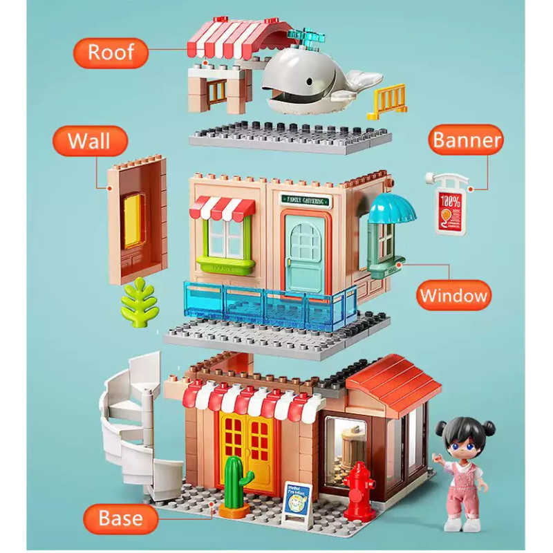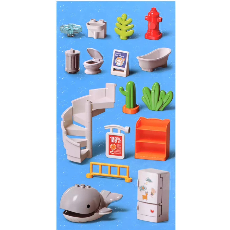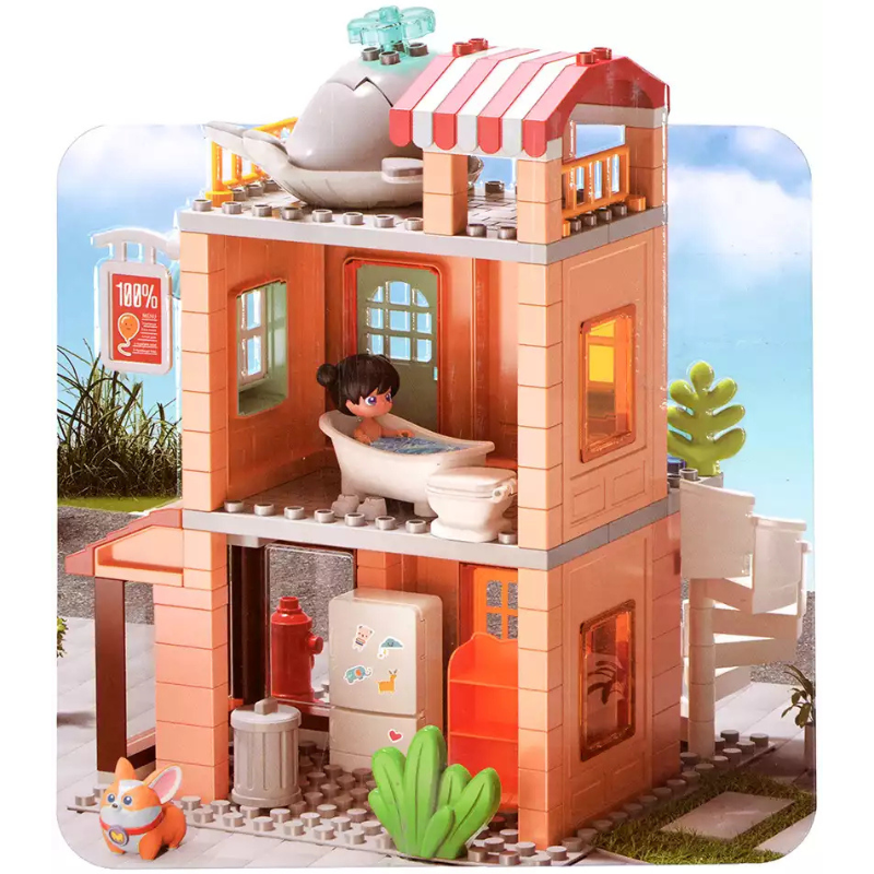 تصميم جذاب وألوان مبهجة مع عناصر ممتعة مثل الزحليقة، الشرفة، والإكسسوارات المنزلية — تجربة لعب متكاملة مليئة بالخيال!