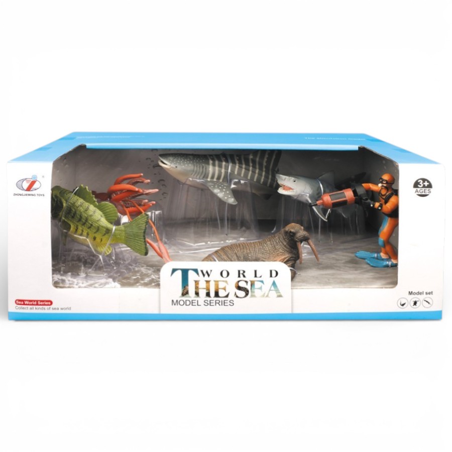 استكشف أعماق المحيط مع مجموعة مجسمات الكائنات البحرية للأطفال التي تضم مجموعة مميزة من حيوانات البحر مثل قرش الحوت، القرش الأبيض، الفظ وسرطان البحر بالإضافة إلى مجسم غواص لاستكشاف عالم البحار.