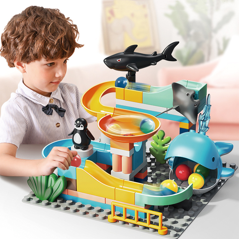 Ocean Slideway Marble Run Building Set – FL1100 مغامرة الانزلاق البحري – لعبة تركيب مسار الكرات (عالم المحيط)