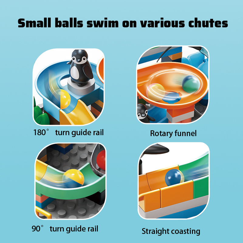 لعبة تركيب مميزة تدمج بين المسارات والانزلاقات والكرات المتحركة، لتمنح الأطفال تجربة تفاعلية مليئة بالحركة والتشويق!