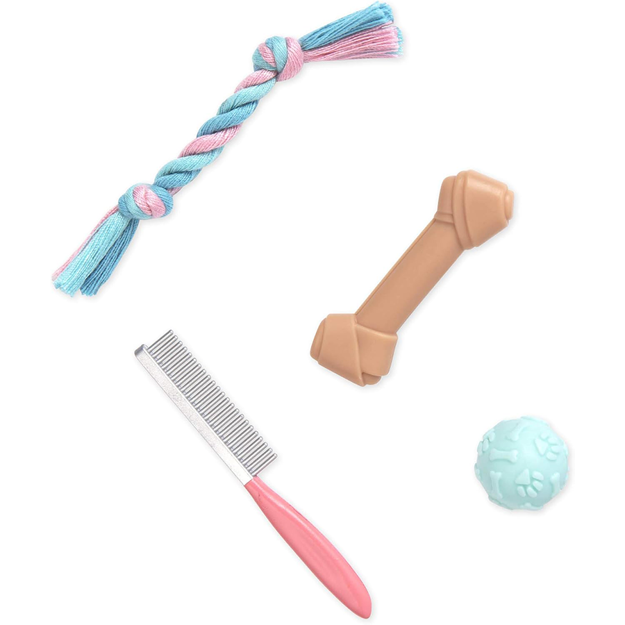 الميزات الخاصة؛ تتضمن دمية، ملابس، كلبًا محشوًا، مقودًا، طوقًا، حبلًا، كرة، لعبة عظمية، ومشطًا.