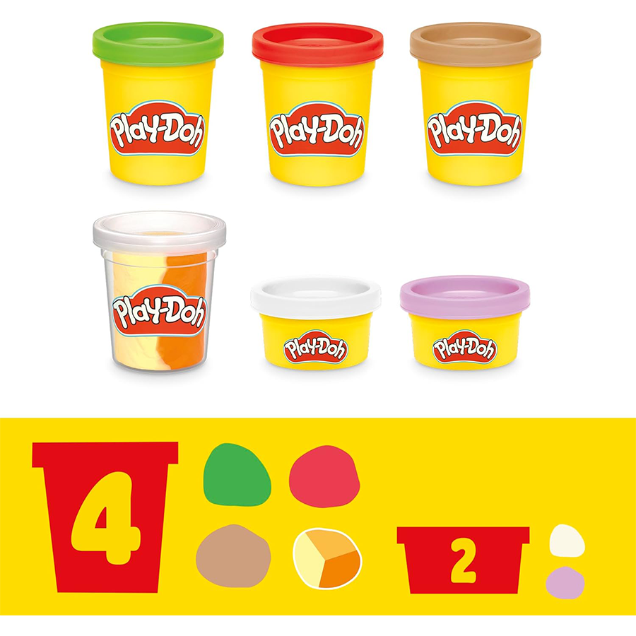 2 أونصة من المواد بثلاثة ألوان – الأحمر والأصفر والبرتقالي لتقليد الجبن، بالإضافة إلى 5 ألوان كلاسيكية تمنح الأطفال كل ما يحتاجون إليه للبدء (تحتوي على القمح).