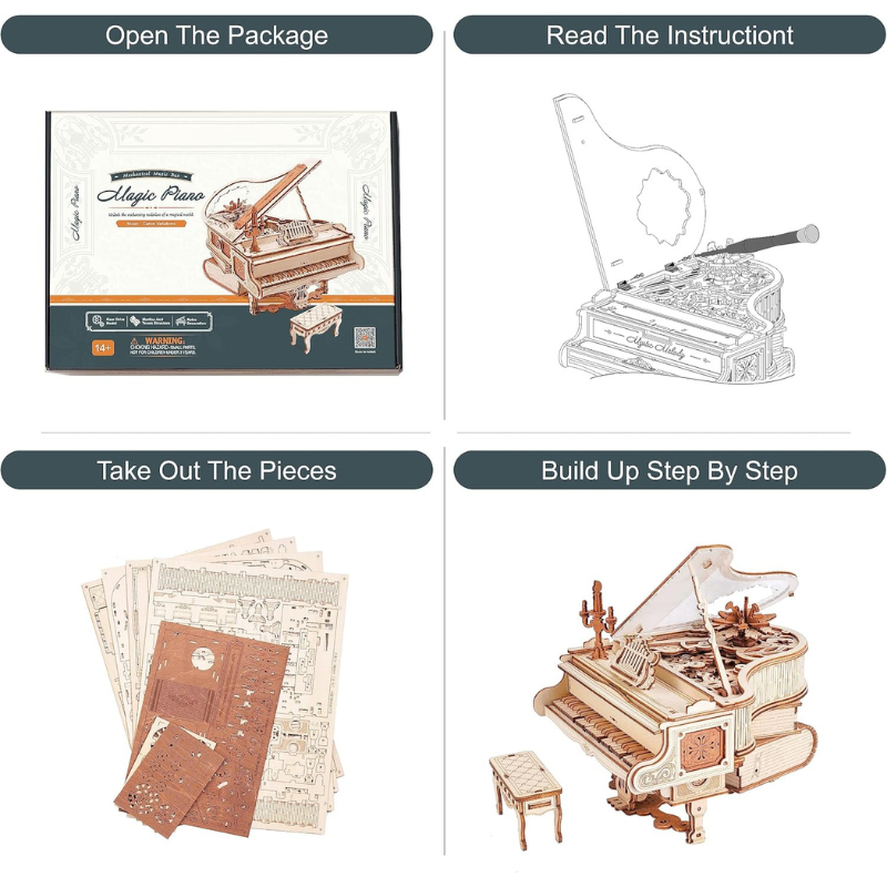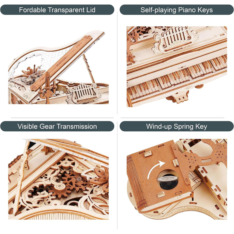 ROBOTIME Magic Piano AMK81 3D Wooden Mechanical Music Box مجسم بيانو موسيقي ميكانيكي ثلاثي الأبعاد – DIY فاخر