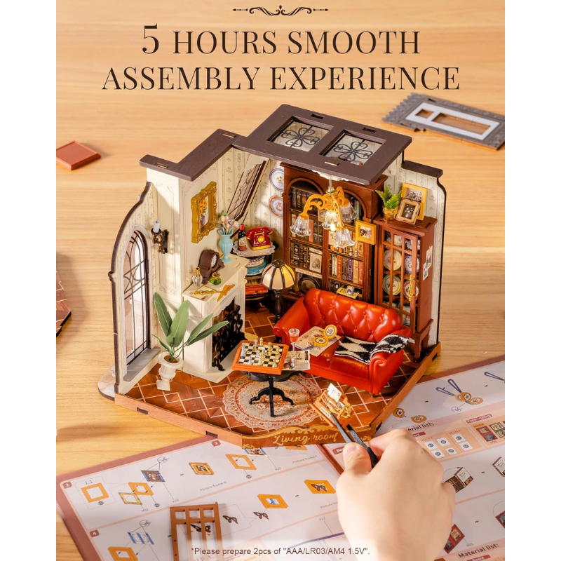 Rolife Catherine’s Living Room DIY Miniature House DG175 مجسم غرفة معيشة كلاسيكية أوروبية ثلاثي الأبعاد – DIY للكبار