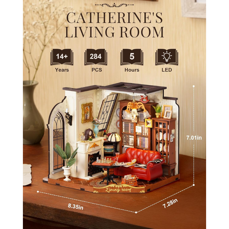 استمتع بتجربة تركيب فنية تجمع بين الفخامة الكلاسيكية والتفاصيل الدقيقة مع مجسم غرفة المعيشة Catherine’s Living Room من Rolife، تصميم مستوحى من الطراز الأوروبي العتيق، يعكس أناقة المنازل الراقية بلمسات دافئة ومليئة بالحياة.