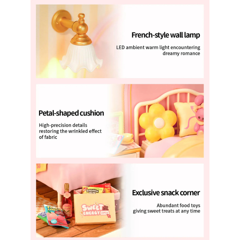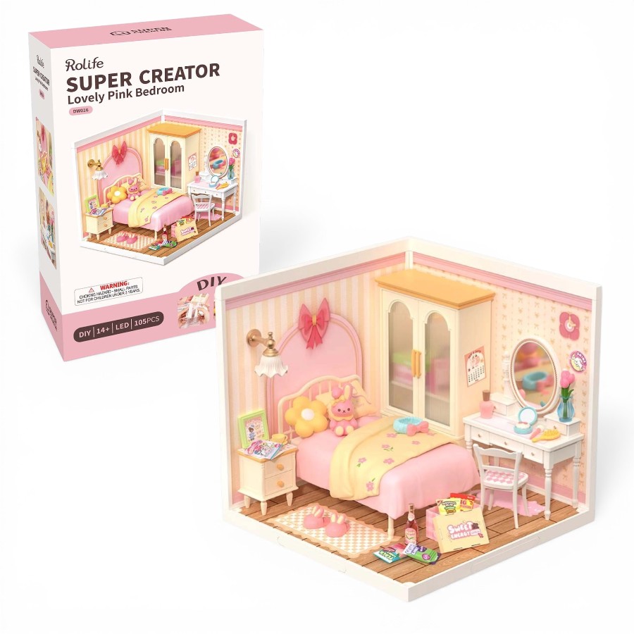 Rolife Lovely Pink Bedroom – Super Creator Miniature House DW016 مجسم غرفة نوم وردية أنيقة