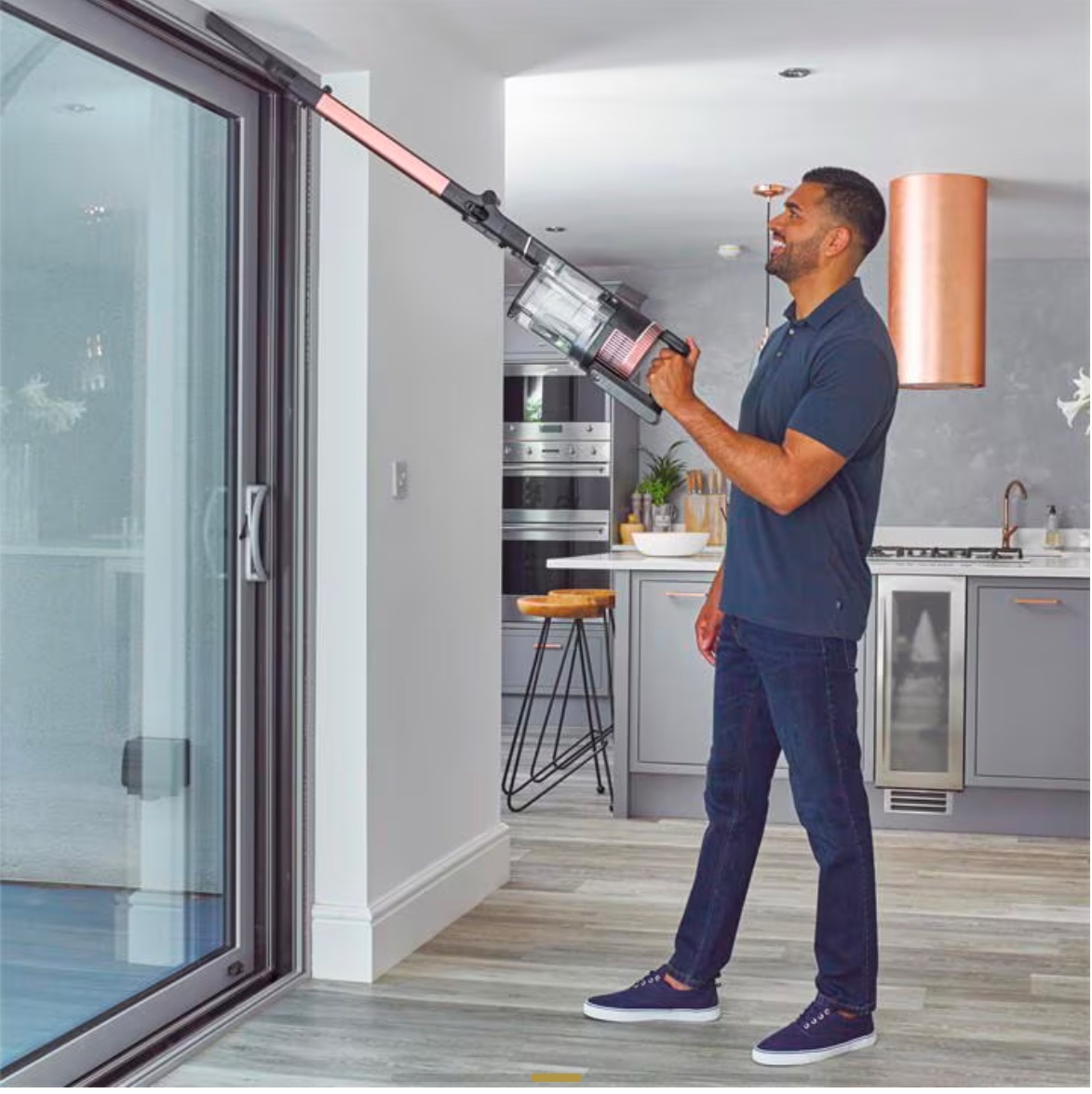 - ينحني حتى لا تضطر إلى ذلك: ينحني عصا Flexology للوصول إلى أي مكان، وينظف بسهولة أسفل الأثاث، ويمكن طيه للتخزين المستقل المدمج.
