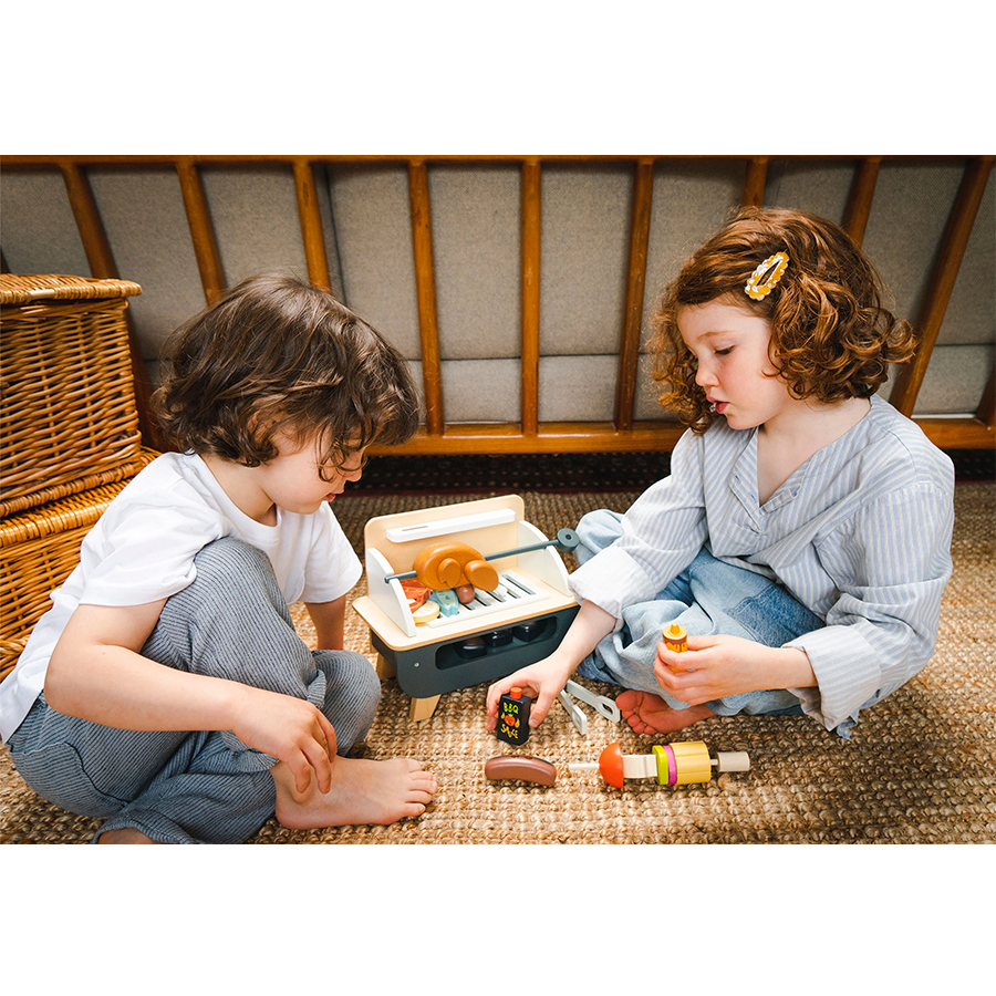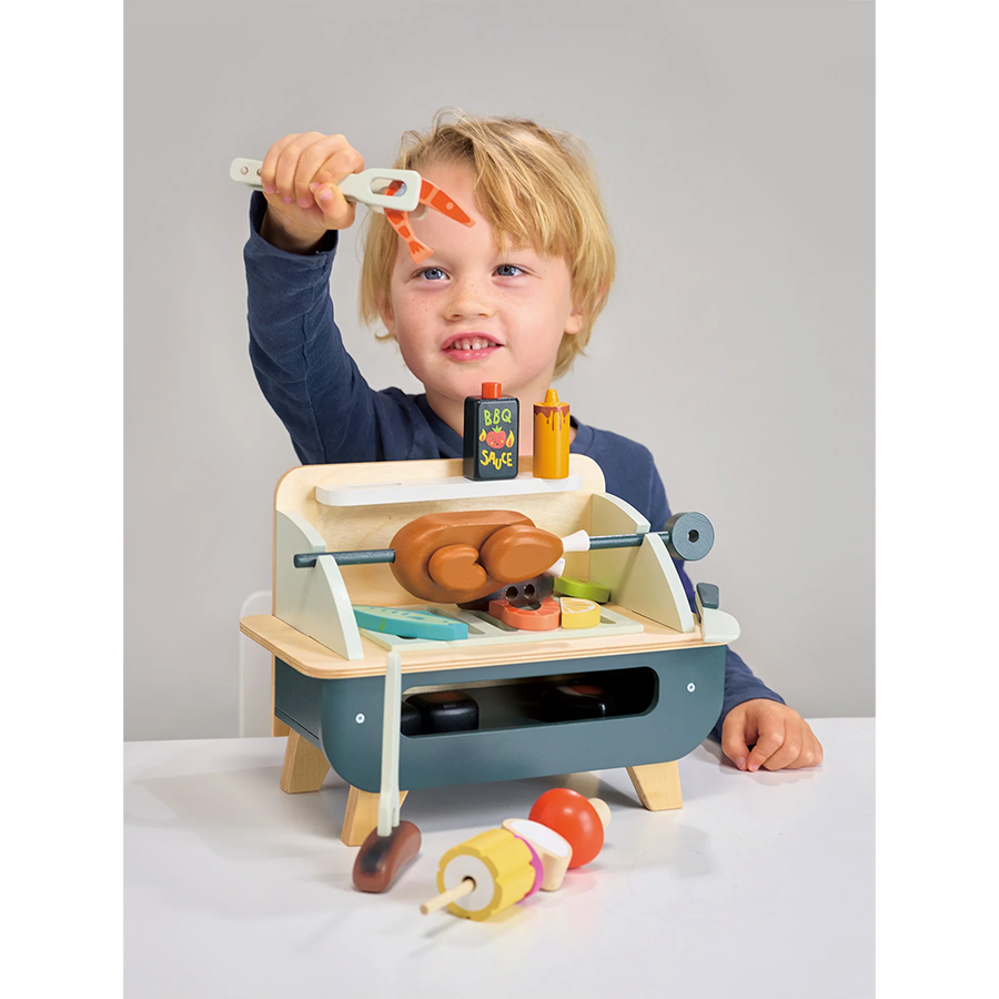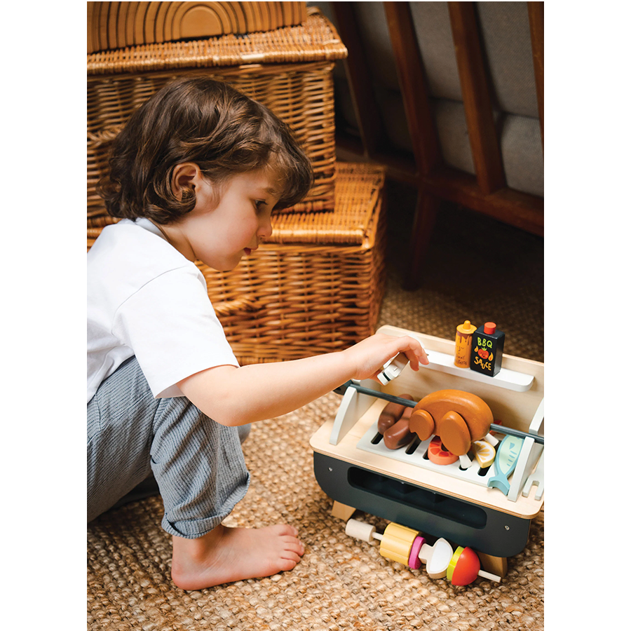- امنح أطفالك تجربة لعب تظاهرية فريدة وجذابة مع مجموعة الشواء الخشبية من Tender Leaf! تتضمن المجموعة شواية قابلة للإزالة، 3 فحم متوهج، 5 قطع دجاج، 2 سجق، سيخ خشبي مع 5 قطع من الخضار للخياطة، سمك، شريحة ليمون، صلصة شواء، خردل، ملقط وسكين. تعتبر المجموعة مثالية للأطفال المحبين للطهي والذين يرغبون في أن يكونوا مثل الكبار. تحاكي الشواية الخشبية الشواية الحقيقية وتتضمن مجموعة متنوعة من الملحقات التي تشجع الإبداع والخيال. تتميز المجموعة بسهولة تخزينها وتجميع جميع الملحقات أسفل الشواية في منطقة تخزين مريحة. مجموعة الشواء للأطفال هي هدية رائعة لأي طفل يحب الطبخ وستوفر وقتًا ممتعًا للعب مع تطوير المهارات الاجتماعية والحركية والخيال.