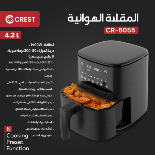 4.2L Digital Air Fryer – 8 Preset Cooking Programs CR-5055 مقلاة هوائية سعة 4.2 لتر – شاشة لمس – 8 برامج طبخ